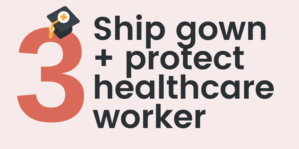 You’ll get an email confirmation with us with instructions how to ship your gown, but you can also check our FAQs. Drop it in the mail and know you’ve helped a healthcare worker in need!